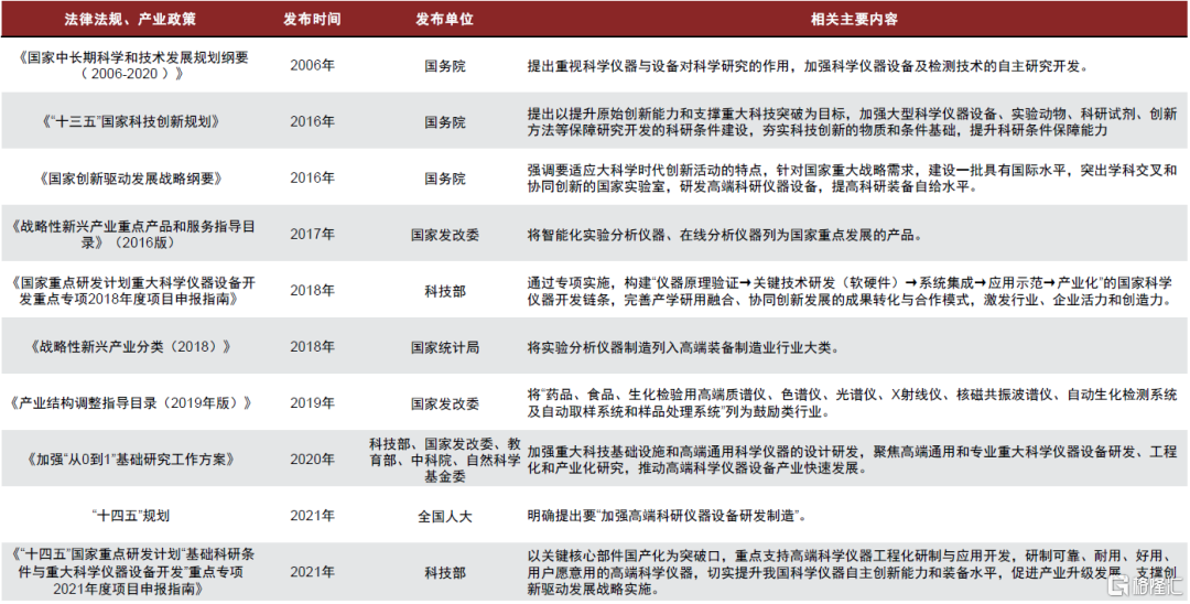 圖表29:部分科學儀器重點法律法規與產業政策梳理