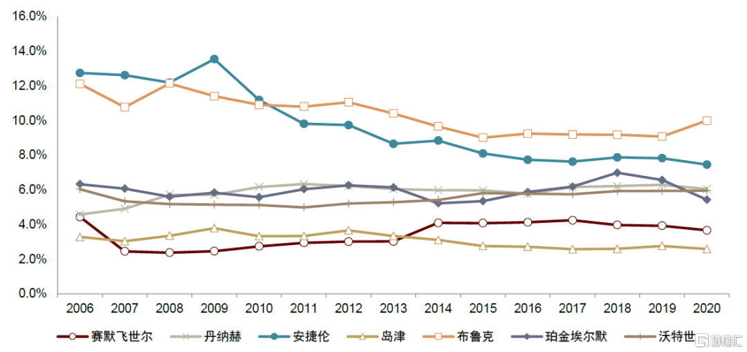 圖表38:全球分析儀器龍頭研發費用率情況