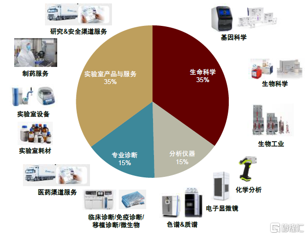 由儀器向“科學服務一體化”延申,拓寬天花板並減弱週期性。全球分析儀器龍頭均較為重視龐大的客户基礎帶來的售後服務市場機遇,通過外延併購與內生培育,大力拓展試劑、耗材、服務業務,截至2020年,售後市場收入已佔大部分龍頭企業收入的50%以上。特別的,賽默飛世爾前身熱電公司以分析儀器起家,而2020年儀器收入僅佔其收入的21%,已形成包括分析儀器、實驗室設備、試劑、耗材和軟件等在內的實驗室綜合解決方案,甚至將業務版圖向下遊CRO/CDMO檢測服務市場延申。我們認為,長期來看,分析儀器企業面對的“科學服務一體化”空間非常廣闊,進入售後市場也有助於增加儀器企業的收入長期穩定性和可預測性。