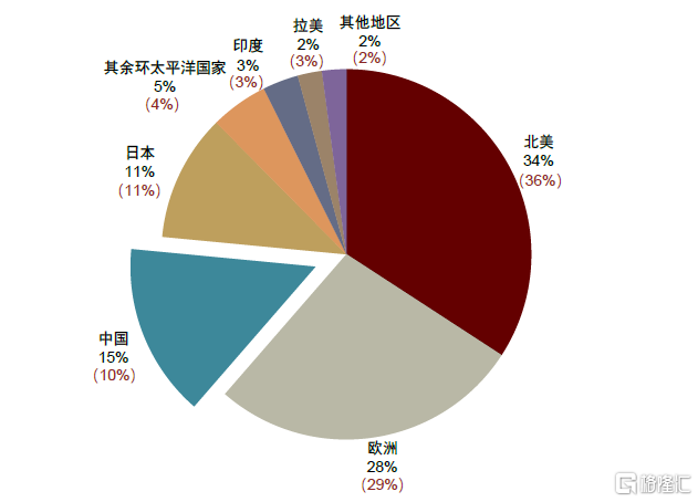 資料來源:SDI,前瞻產業研究院,中金公司研究部 注:括號內為2015年佔比