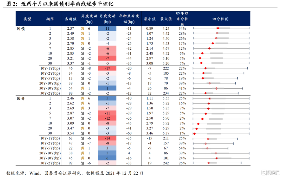 從歷史行情看,每一個利率小週期的正式開啟,都離不開曲線形態的陡峭,而這種陡峭往往是以短端下行更快所帶動;從2021年的新變化看,跨週期調節下,利差的拐點往往領先於利率的拐點,極致平坦的曲線正在醖釀着利差“反轉”的可能。我們認為,下一階段曲線重新變陡的可能性更高,且更可能是以“牛陡”的形態出現。