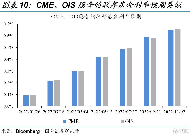 加息預期的波動,更多反映短期市場情緒,對中長期走勢的判斷並非絕對準確。加息預期指標的作用,更多反映不同主體對美聯儲未來貨幣政策的看法,進而影響到不同資產的短期定價。但從結果來看,CME利率期貨隱含的加息預期對中長期走勢的判斷並非絕對準確,《華爾街日報》等機構同樣難以做出準確預判。