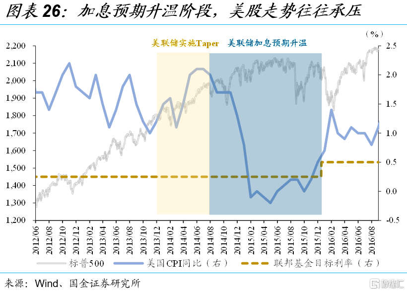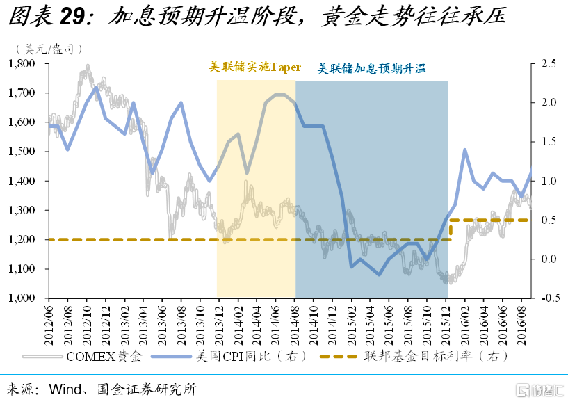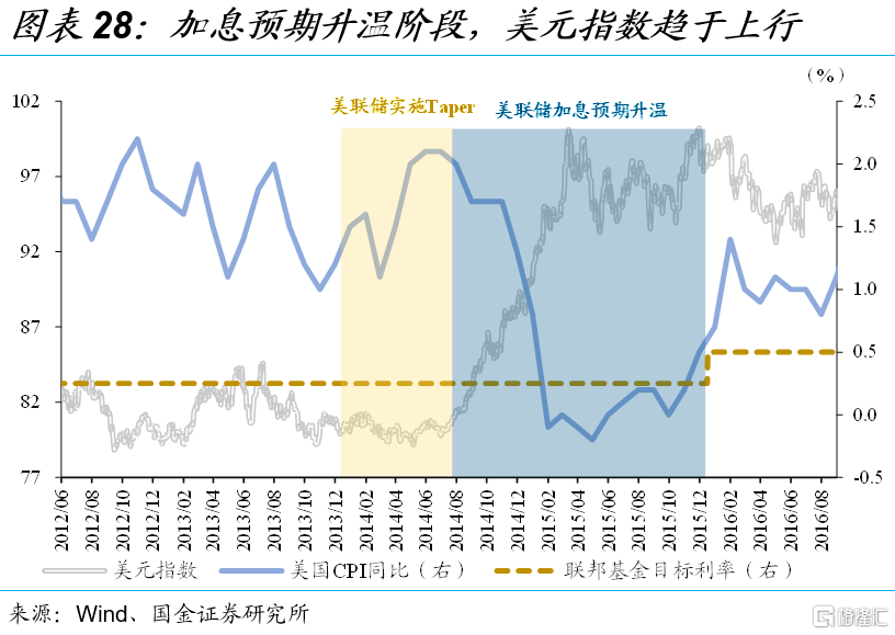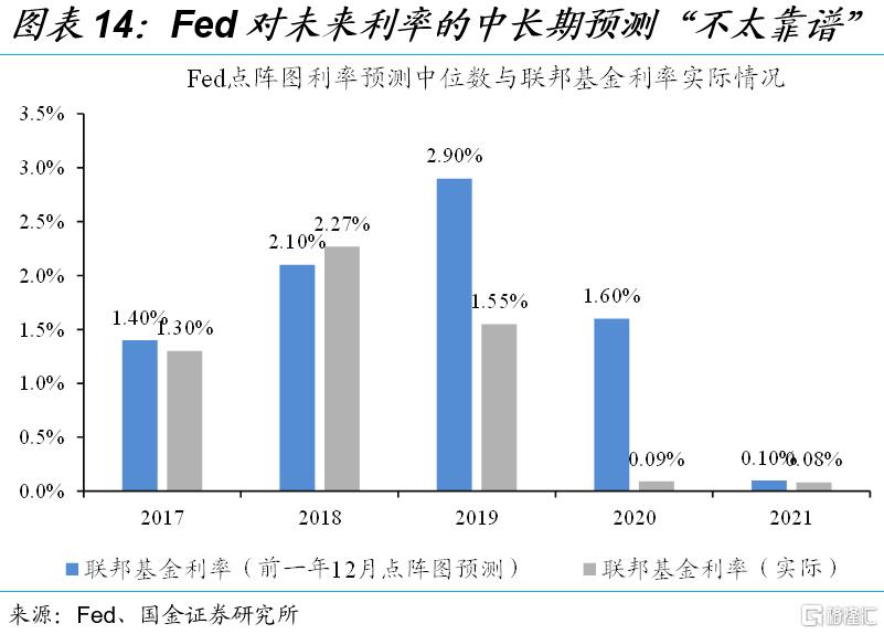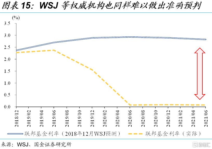 (4)加息預期指標的作用,更多反映不同主體對美聯儲未來貨幣政策的看法,進而影響到不同資產的短期定價。但從結果來看,CME利率期貨隱含的加息預期對中長期走勢的判斷並不絕對準確,《華爾街日報》等機構同樣難以做出準確預判。