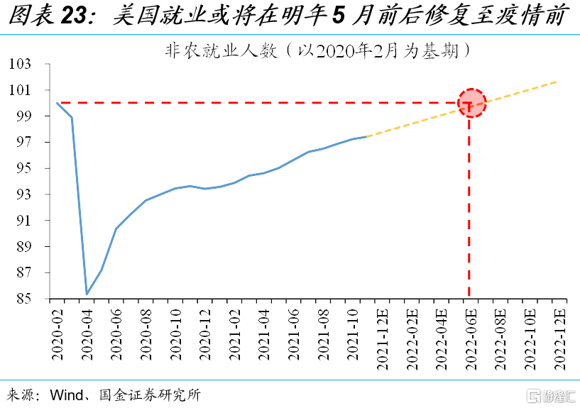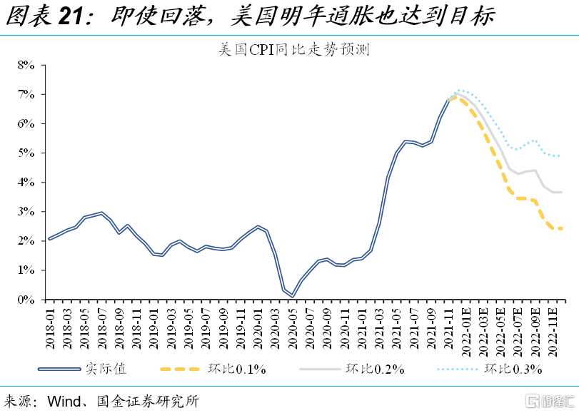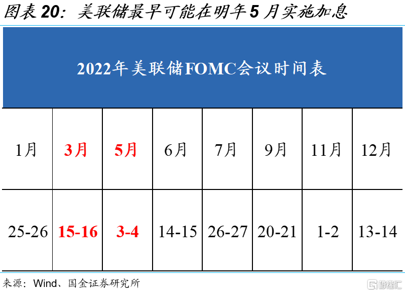 (6) 鑑於通脹已達目標,就業最大化才是決定美聯儲加息的關鍵。若延續當前修復速度,美國就業有望在明年5月前後恢復至疫情前水平,意味着美聯儲可能將於3月吹風加息、5月實施。參考歷史經驗,中短期加息預期波動仍將干擾市場情緒。至於全年加息幾次,取決於就業的後續演繹。