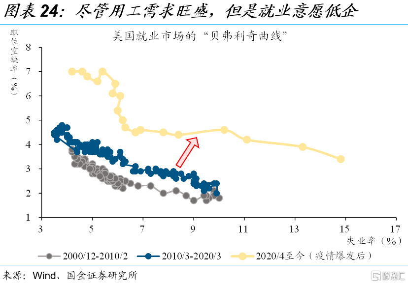 展望未來,美聯儲最早可能將在明年3月吹風加息、5月實施,但後續加息節奏存在變數。與前一輪貨幣正常化週期最大的不同是,美聯儲明確表示通脹已達目標,就業最大化才是決定加息的關鍵。若延續當前修復速度,美國就業有望在明年5月前後恢復至疫情前水平,意味着美聯儲可能將於3月吹風加息、5月實施。考慮到“疫後創傷”等或將持續壓制美國居民的就業意願,美國就業市場的中長期修復速度猶存較大變數。這意味着,美聯儲在明年的加息次數,依然存在極大的不確定性。