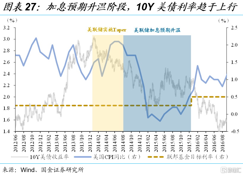映射到市場層面,明年3月前加息預期波動仍將干擾市場情緒,後續演繹取決於美國就業等基本面的變化。考慮到美聯儲或將於明年3月吹風加息、5月實施,中短期加息預期容易波動。歷史經驗顯示,美聯儲加息預期升温階段,美股、黃金等走勢往往承壓,10Y美債利率、美元指數趨於上行。但未來加息預期的演繹路徑,仍將主要取決於美國就業等核心經濟指標的變化。