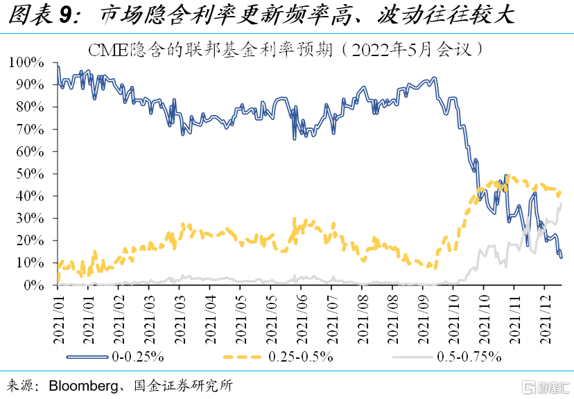 (3)CME利率期貨隱含的加息預期,屬於市場交易的結果。由於市場交易容易受到短期情緒擾動,上述加息預期的波動往往較大。《華爾街日報》等機構基於問卷調查的加息預期趨勢相對穩健,但頻率偏低、反應較滯後。