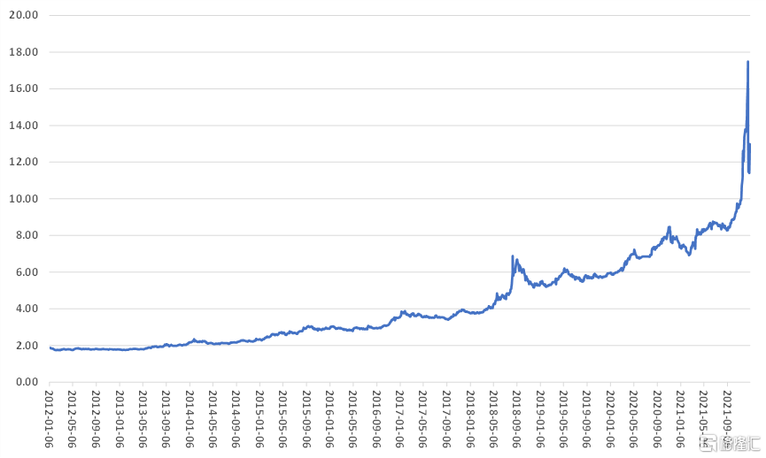 近期土耳其里拉出現了大幅貶值,引發市場關注。雖然近年來里拉匯率一直呈現貶值趨勢,但是2020年初疫情以來,貶值速度有所加快。尤其是今年三季度後,美元兑里拉匯率由8.3左右快速貶值到12月31日的12.99,當然近期又有所回調。