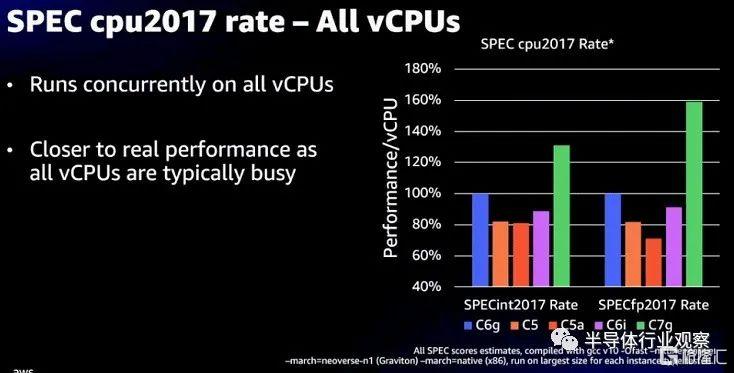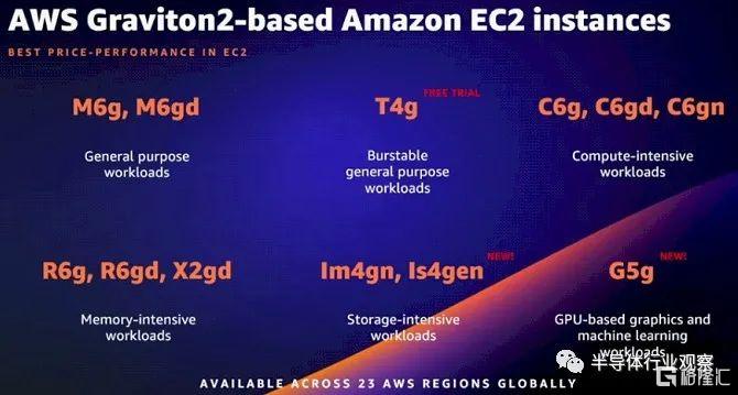 顯然,Graviton 的努力不僅僅是從英特爾和 AMD 那裏獲得更便宜的 X86 服務器芯片價格——儘管它也是如此,即使Saidi沒有提到它。但只要 AWS 在其雲中託管大量 X86 客戶,它就會爲其雲客戶購買 Xeon SP 和 Epyc 處理器,用於他們創建的那些不易移植到 Arm 架構並因此從 20 Graviton 系列在 EC2 上的 X86 實例上顯示了 1% 到 40% 的性價比優勢,涵蓋了廣泛的工作負載和場景。