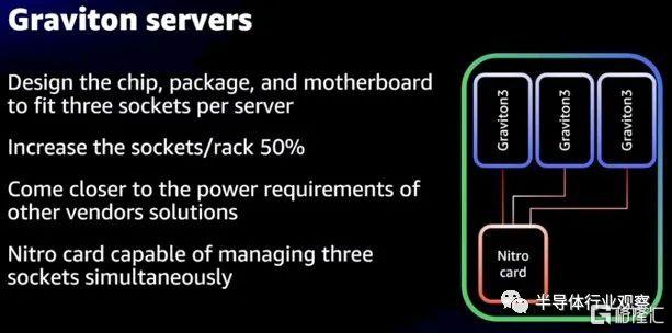 通過將大量 CPU 功能卸載到 Nitro DPU 並將一堆單插槽 Graviton3 節點塞到卡上,AWS 表示它可以將每個機架的插槽增加 50%——這大概意味着不會犧牲任何相關的性能來自 AMD 的 X86 處理器也處於合理的散熱範圍內。