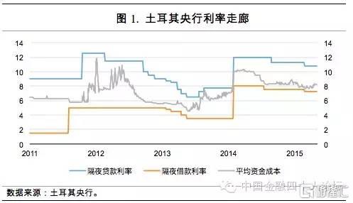 比如,2011年9月歐洲債務危機加劇,資本流出,土央行保持利率走廊底端5%不變,但上浮頂端350個基點至12.5%,將走廊從400個基點拓寬至750個基點,央行平均資金成本也隨之向上大幅波動(圖1)。