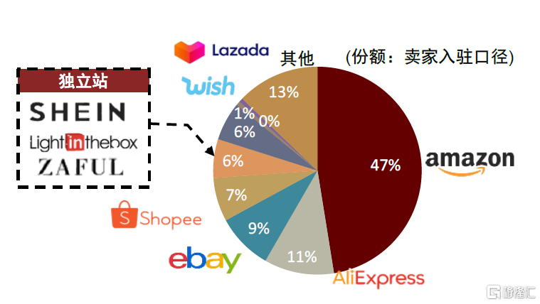 平臺格局:亞馬遜穩居頭部,獨立站迅速崛起