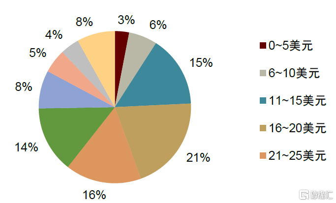 亞馬遜穩居B2C出口平臺頭部,抽傭率接近傳統零售商。交易規模:據弗若斯特沙利文測算,2020年亞馬遜佔全球第三方跨境電商主要平臺的GMV份額爲68%,第二名全球速賣通份額僅爲14%。中國賣家入駐角度:2020年亞馬遜賣家入駐份額達47%,高於第二名速賣通的11%。傭金費率:憑藉用戶體量優勢,亞馬遜同品類傭金較其他跨境電商平臺高出5-10ppt,抽傭率接近傳統零售商。定價區間:2020年亞馬遜20美元以上商品佔比達55%,加權平均商品單價約爲25美元,平臺定價區間高於速賣通。