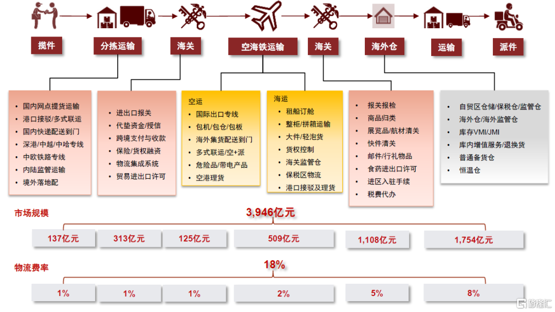 圖表:跨境電商物流全鏈路:要素、規模、費率(2020年)