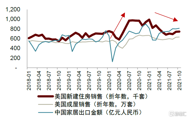 疫情透支耐用品消費需求,相應品類的跨境電商出口增速出現回調。傢俱家電等耐用消費品出口和海外地產週期聯繫緊密(參考《此輪美國地產週期還有多少空間?》)。疫情推動的美國房地產市場高漲不具備可持續性,2021年以來的美國房地產行情已經有所反映。我們認爲,伴隨海外疫情得到控制以及相關消費需求回落,耐用消費品的跨境電商出口將迎來降速,這或將對海外倉產生一定影響。