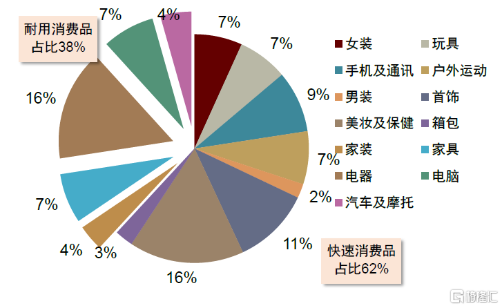 圖表:速賣通品類仍以快速消費品爲主(2020年)