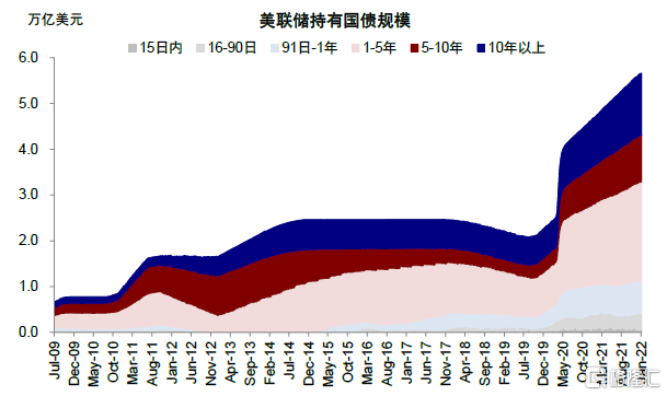 圖表20:當前美聯儲持有長端(5~10年期及10年期以上)國債規模爲2.37萬億美元,佔比約42.0%