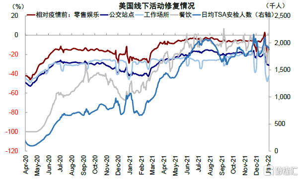 對比來看,當前美國增長已經處於逐步趨緩通道(根據Bloomberg預期,2022年一季度美國實際GDP年化環比將從四季度的6降至4%)(圖表6),同時拜登的新一輪1.75萬億美元刺激(Build Back Better, BBB)暫時也缺乏進展,因此增長和政策環境都有差異。