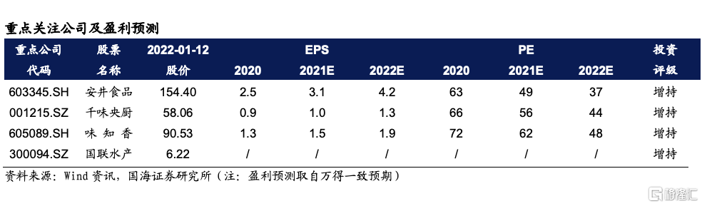 6、重點推薦個股:建議重點關注:安井食品,千味央廚,味知香,國聯水產;建議關注:聖農發展,春雪食品,龍大美食,雙匯發展。