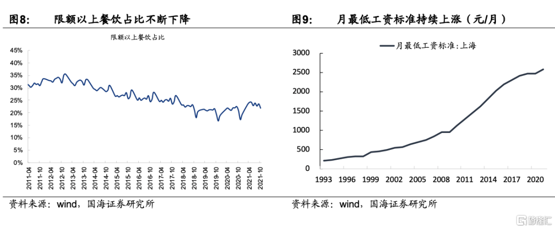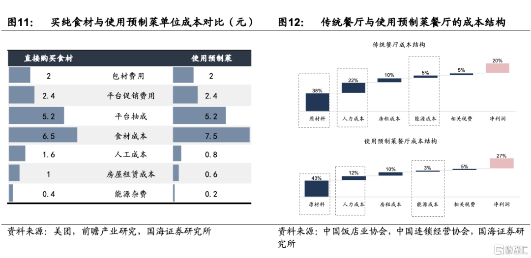 1)房租以及人力成本的不斷提升,催生了餐飲端降本提效的需求。隨着門店租金和人力成本持續提升,使用預製食材能夠有效降低後廚面積、減少後廚員工,從而降低成本。一些小B端餐飲沒有足夠能力自建中央廚房,也會有較大的外購半成品需求。根據中國飯店業協會數據,使用預製菜的餐廳相比傳統餐廳,在原材料上投入佔比高5pct,但是人力成本以及能源成本得到有效下降,淨利率可高出近7pct。