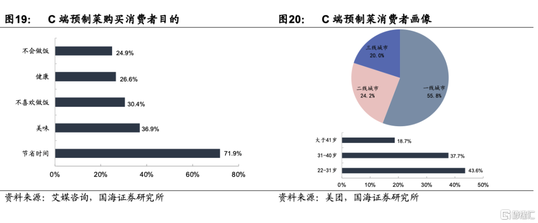 1)C端預製菜目前的滲透率還很低,但其主要消費人羣與預製菜C端消費者畫像重合度高;2)其鋪設的前置倉等也爲預製菜打下了較好的物流基礎,3)直接面向終端消費者,積澱的消費大數據更有利於洞察消費者喜好,進行精準銷售。其劣勢在於,1)貼牌製作的品控把關難度較高;2)銷售渠道單一,限於自有平臺。