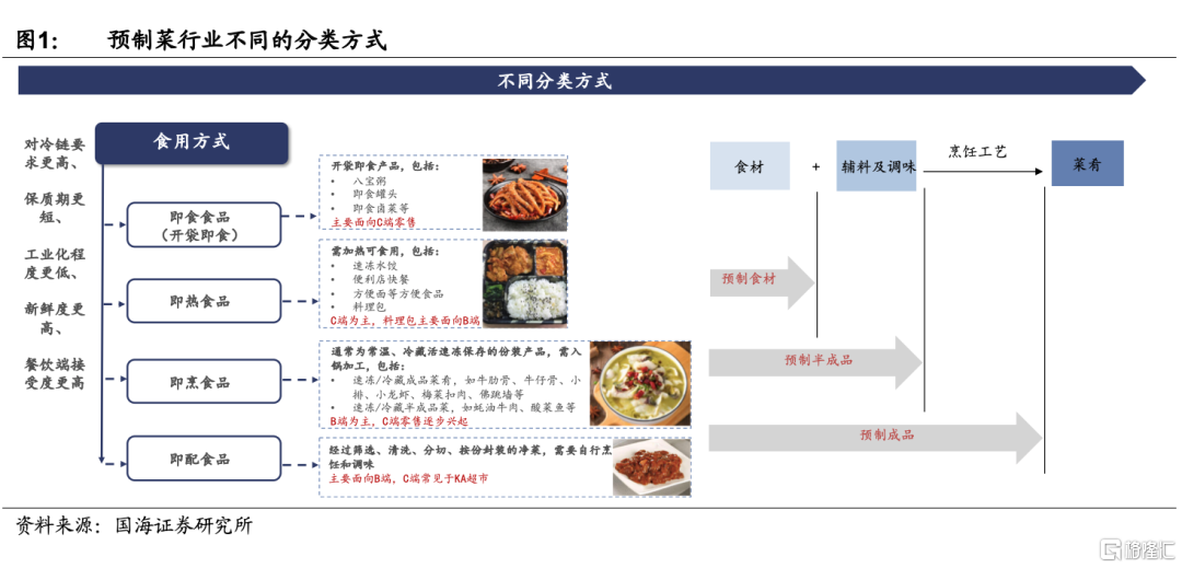 隨着我國冷鏈技術水平的逐步完善,以及消費者對於食材新鮮度、口味的要求越來越高,預製菜也逐步過渡至工業加工程度較低、產品新鮮度高、後期可再自主調控口味但減輕現場製作負擔的品類上,即配食品和即烹食品迎來了更快的發展。