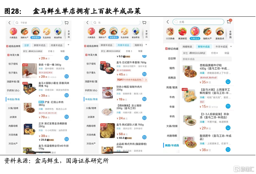 4)新零售商超等新渠道興起,助力預製菜更多觸達消費者。近些年來崛起的新零售渠道消費者畫像重合度較高,預製菜成爲了各大新零售商超爭先佈局的必爭之地。例如,盒馬的主力用戶是25歲到35歲、有家庭的女性。生活在一二線城市,對生活品質有要求,願意花錢買服務,這與預製菜的用戶羣體高度重合。
