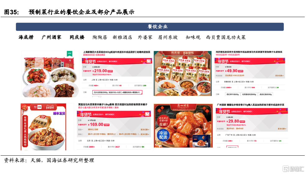 4)餐飲企業:餐飲企業可以充分發揮線下門店品牌優勢,產品上重點爲自家招牌菜或者在家難做的硬菜,產品還原度較好。