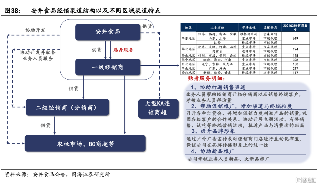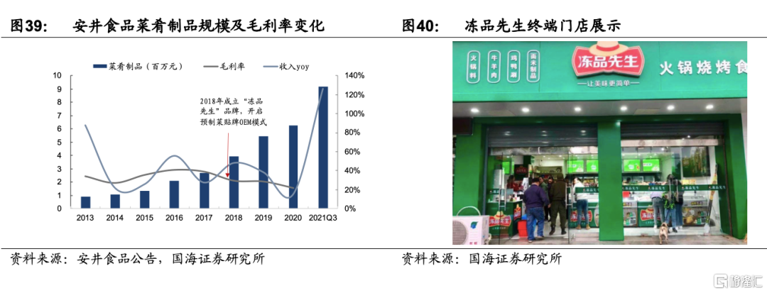 2)公司具備強大的B端和C端的營銷渠道,“凍品先生”與原有渠道良好協同。公司導入凍品SAAS訂貨軟件,賦能“凍品先生”經銷商,同時2020年底開設凍品先生線下門店,在廈門、蘇州等多地開設門店,多選在菜市場周圍,兼顧BC發展。2021年開始,公司升級凍品先生“快手菜”系列,採用專櫃導入模式,公司與經銷商一起投放冰櫃費用設立快手菜專櫃,幫助二批商拓展市場,相比門店模式前期投入更低、放量速度更快。