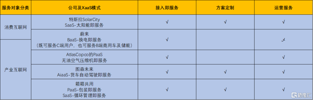 代表性的綠色智能PaaS(產品即服務)包括:百度的MaaS-無人車即服務、特斯拉SolarCity的SaaS-太陽能即服務、AtlasCopco的PaaS-無油空氣壓縮機即服務、箱箱共用的PaaS-包裝即服務。