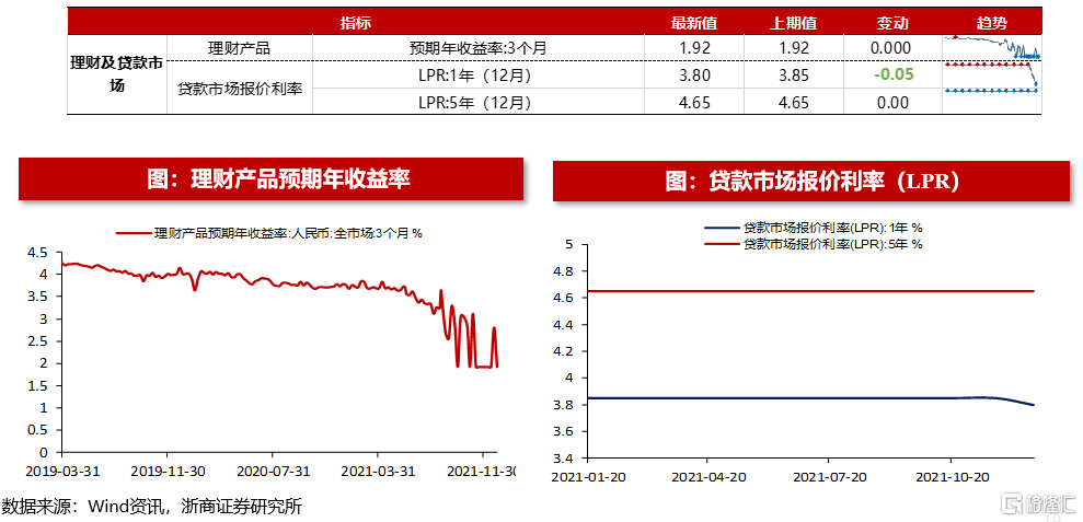 上週理財產品預期年收益率不變。上週理財產品預期年收益率(3個月)爲1.92%(+0%)。