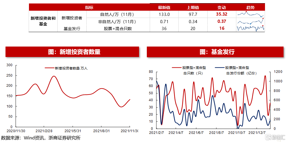 11月新增投資者數量增加。11月新增投資者中自然人爲133.04萬(+35.32萬),非自然人爲0.71萬 (+0.37萬)。