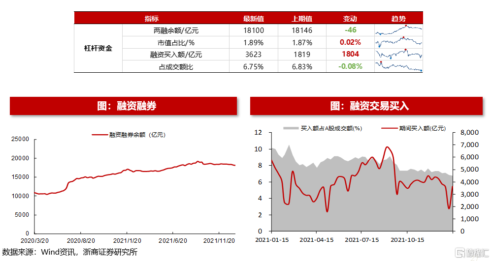 上週兩融餘額下降。上週槓桿資金兩融餘額爲18099.7億元(-46.3億元),市值佔比爲1.9%(+0.02%)。融資買入額3623.4億元(+1804.5億元),佔成交額比重爲6.8%(-0.1%)。