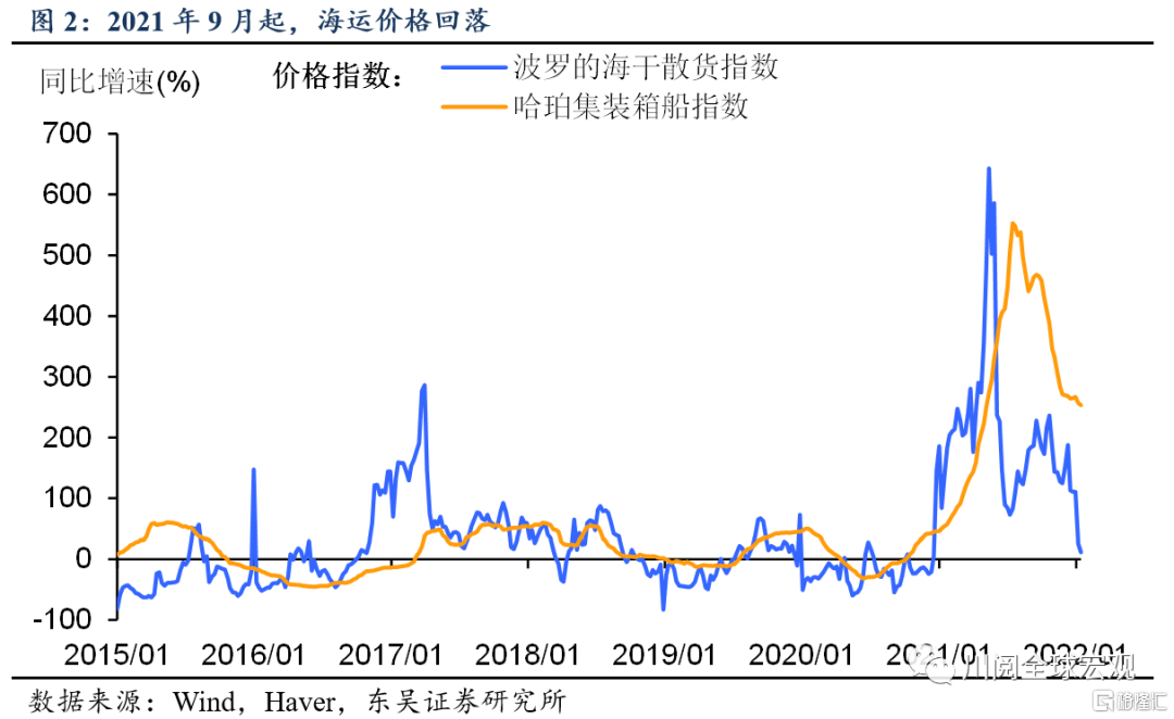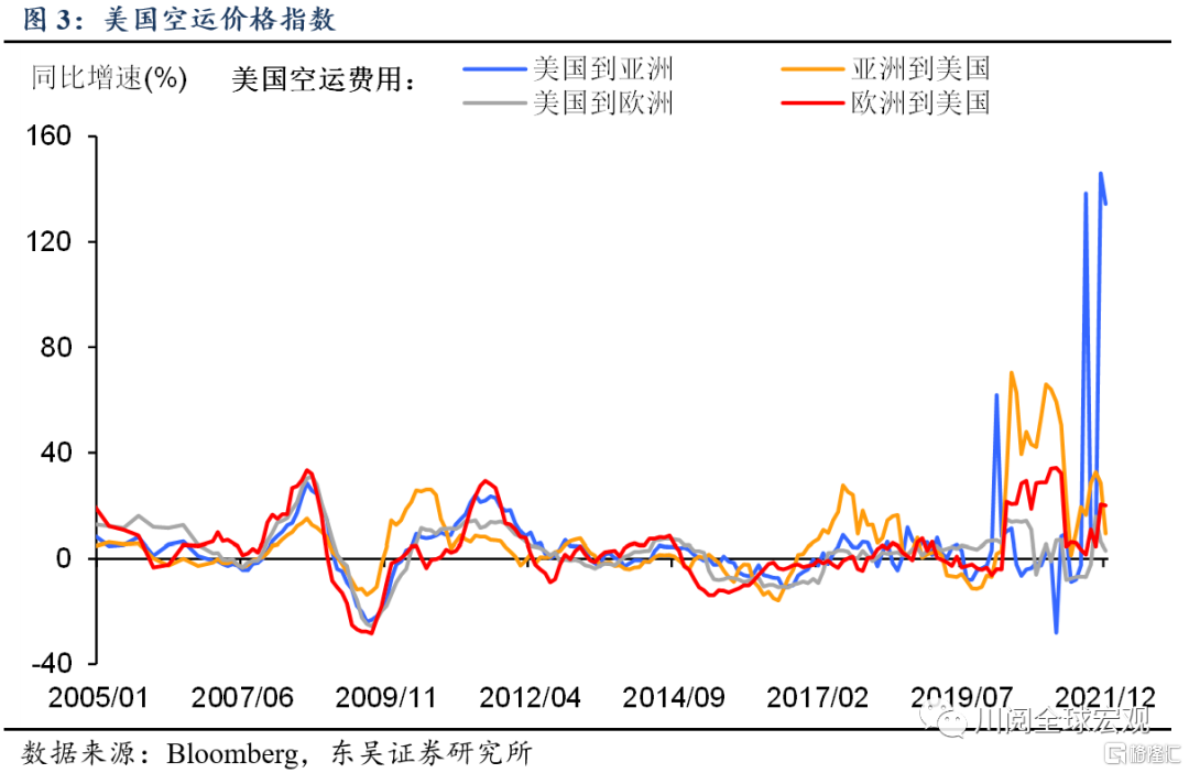 第一類聚焦跨境運輸費用。綜合考慮了原材料的運輸成本、集裝箱船運價以及空運價格,分別參考了波羅的海乾散貨指數、Harpex指數以及亞洲和歐洲方面往返美國的空運價格指數(圖2-圖3)。
