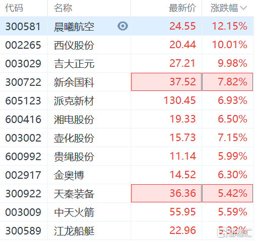 軍工股逆勢走強,晨曦航空(300581.SZ)漲超12%