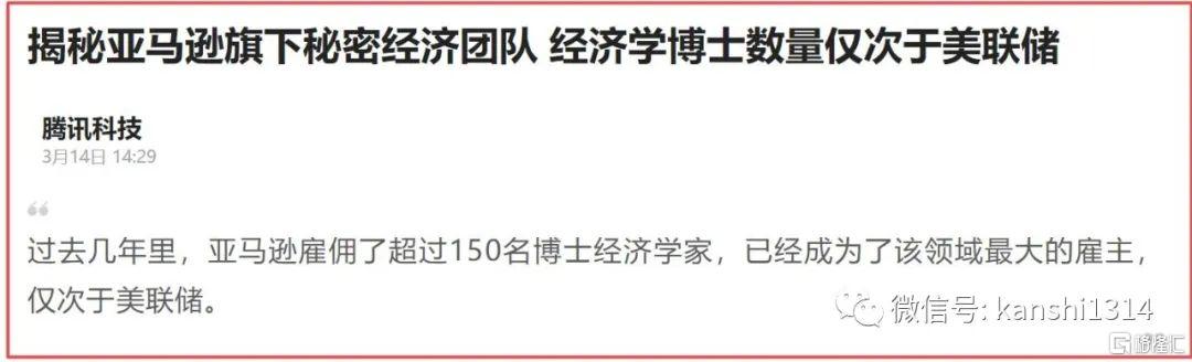 當然,人家美聯儲可不是一般的機構,我這個水平是沒有什麼資格做評論的,也就是閒聊一下,比如在貨幣研究這個領域的學術界,美聯儲是神一樣的存在,僱傭了超過300個經濟學博士,什麼高盛、花旗,差得遠呢,唯一能跟其比較的是近年來在平台經濟領域崛起的亞馬遜,目前僱傭了超過150個經濟學博士,是僅次於美聯儲的,所以亞馬遜這個機構,是值得重視的,我相信人家研究的不僅僅是殺熟和下一步投啥那麼簡單。