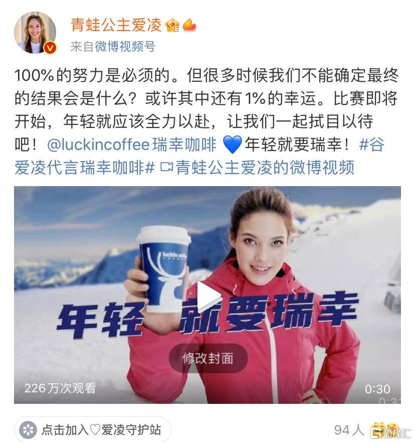 公開信息顯示,2021年,谷愛凌代言品牌包括:中國移動、三棵樹、蒂芙尼、維密、路易威登、IWC萬國表、中國銀行、凱迪拉克、科勒、雅詩蘭黛、元氣森林、瑞幸咖啡、湯臣倍健Yep、Therabody。類別涉及護膚品、飲料、廚衛、汽車、奢侈品等衆多領域。