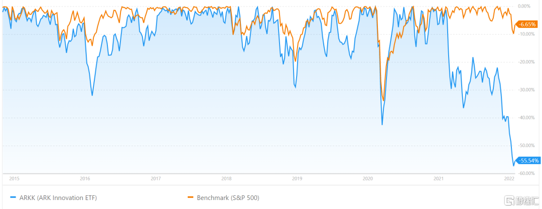 ARKK回撤率歷史 來源:Portfolio Labs