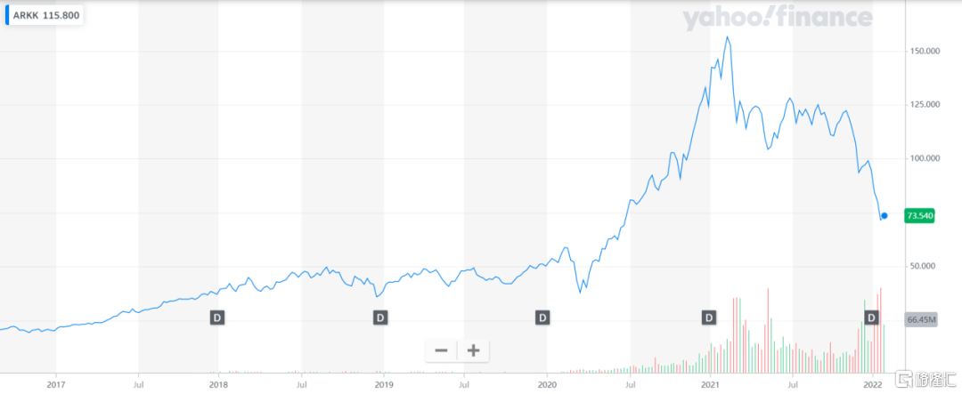 ARKInnovation (ARKK)業績 來源:Yahoo Finance