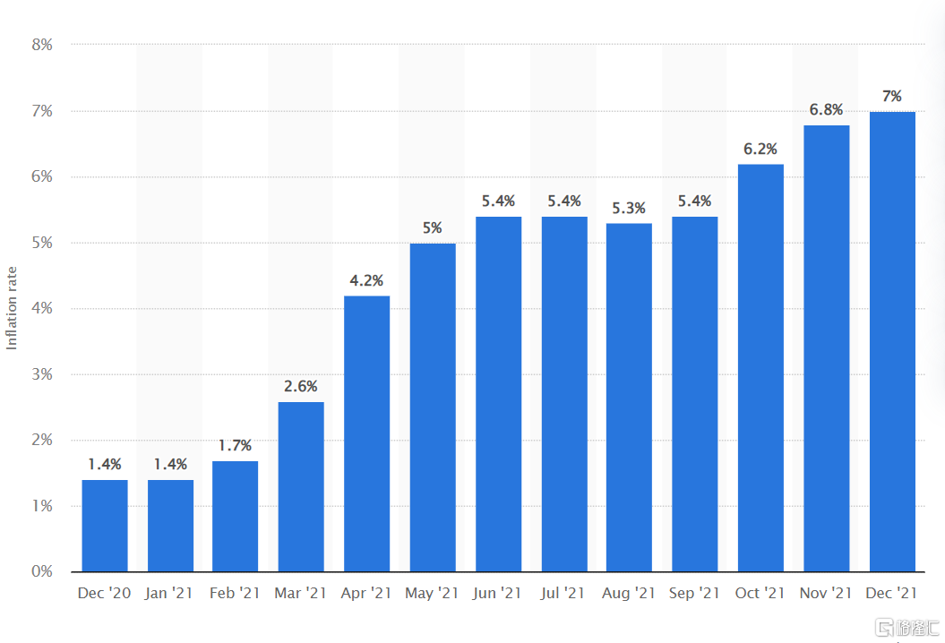 持續走高的美國通脹率 來源:Statista