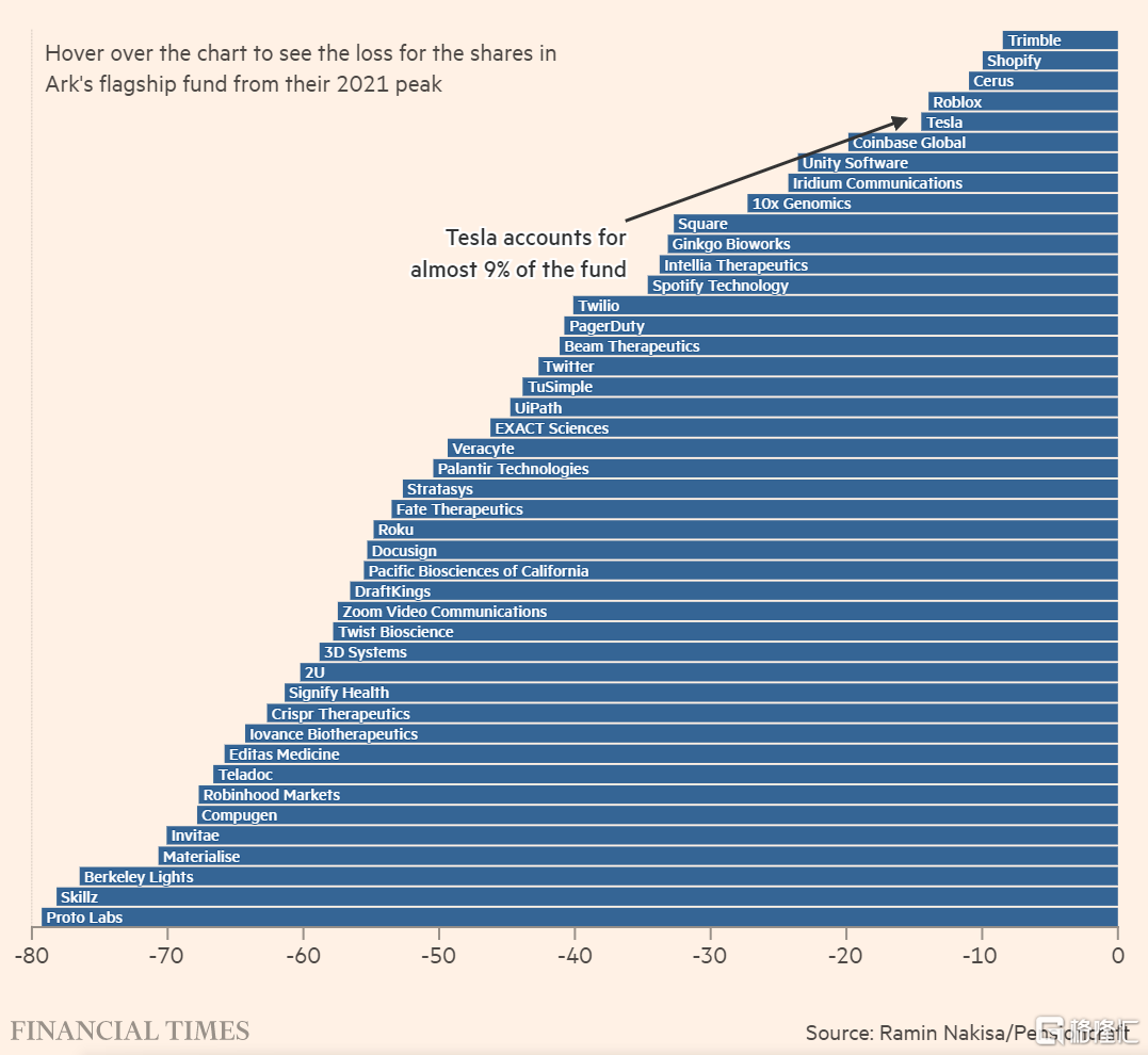 木頭姐持倉分散,但腰斬的不少 來源:FT
