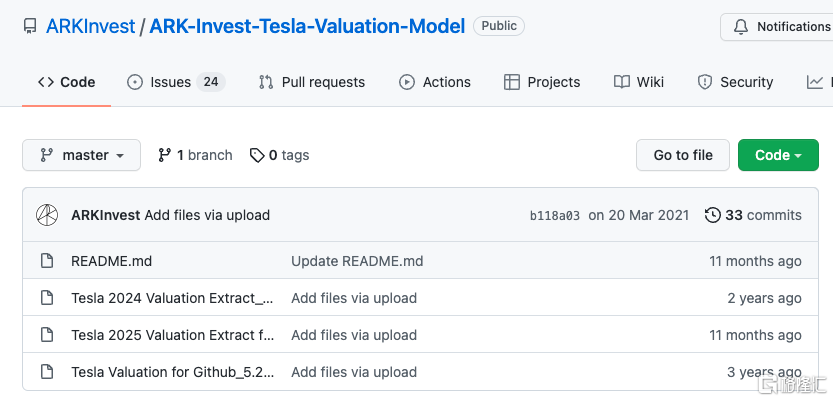 ARK上傳到GitHub上的特斯拉估值模型