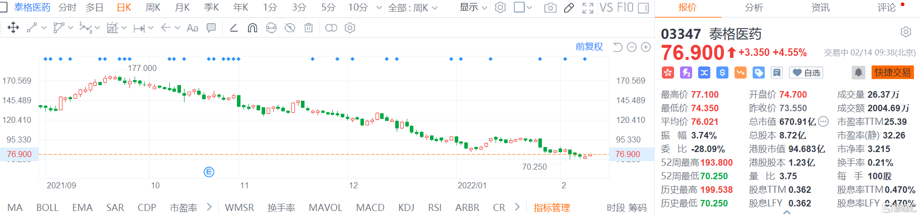 港股異動 | 泰格醫藥(3347.HK)漲4.5%,擬回購2.5億-5億元A股