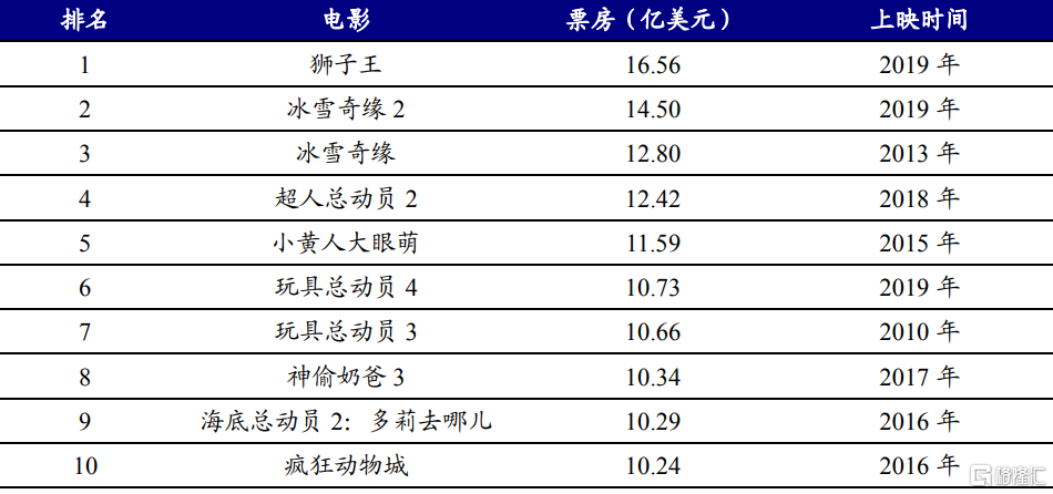 《冰雪奇緣》和《冰雪奇緣2》分別爲全球動畫電影票房第三和第二名