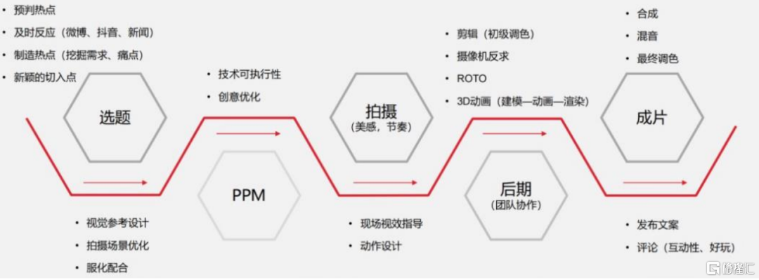柳夜熙賬號的短視頻製作主要涉及選題、PPM、拍攝、後期、成片五大流程