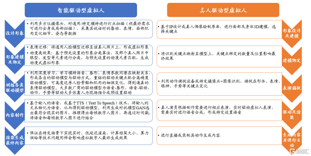 智能驅動型和真人驅動型虛擬人的技術流程存在一定差異