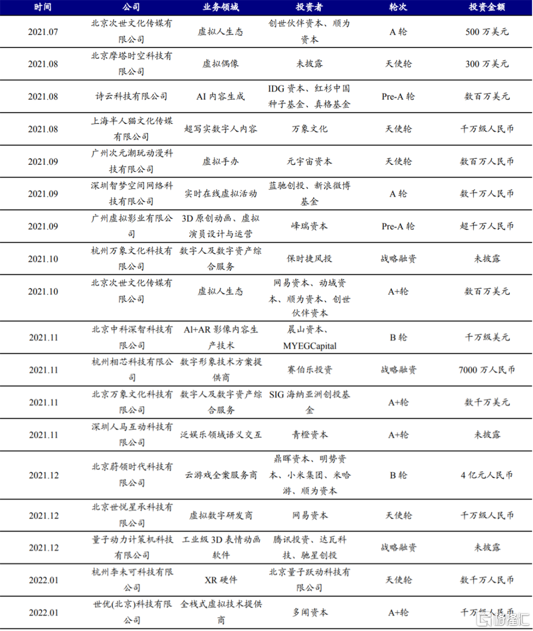 2021年下半年起,虛擬人賽道的投資景氣度較高