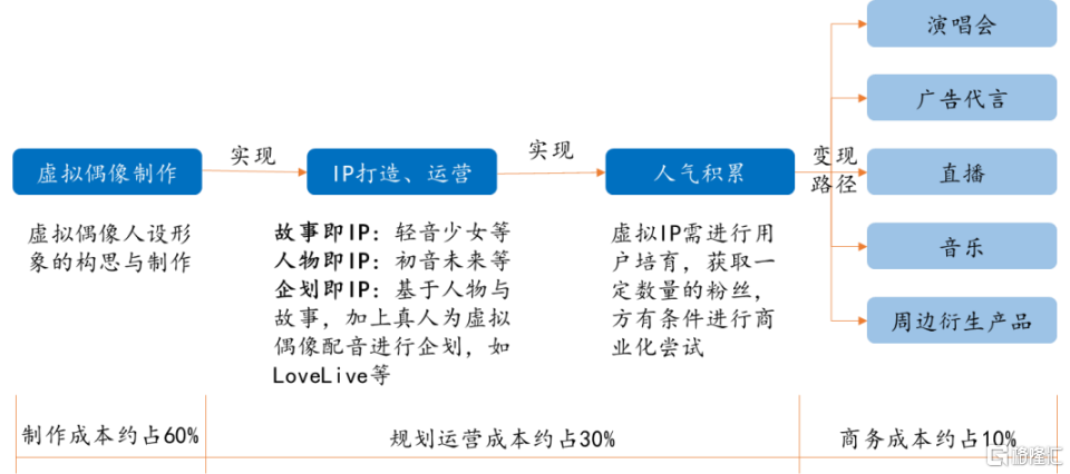 虛擬偶像的成本主要分爲製作成本、規劃運營成本和商務成本