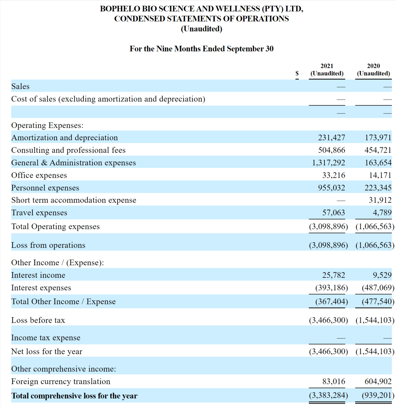 該公司的財務報告顯示,該公司沒有收入,也沒有實質性的運營支出。