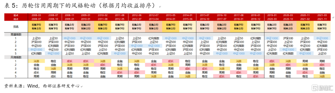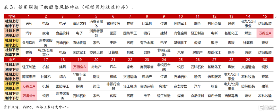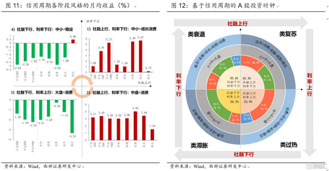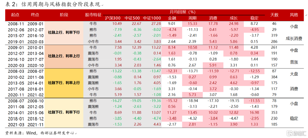 具體而言,信用週期下的市場風格與行業特徵表現爲: